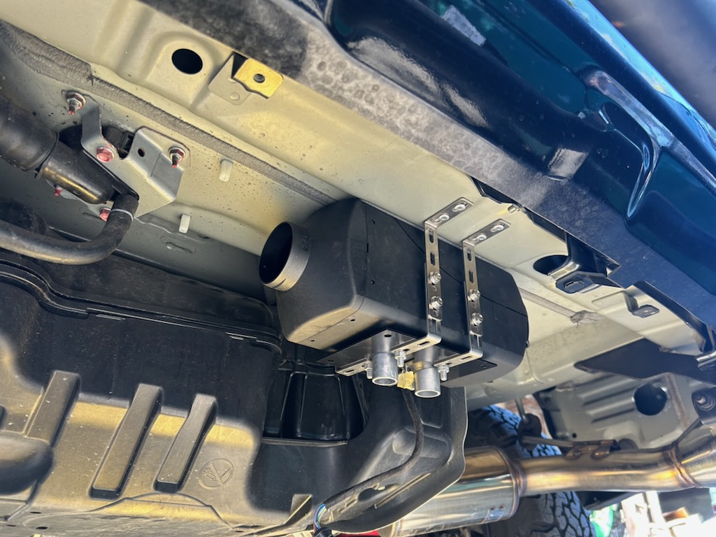 | キャンピングシート下Box内に設置 | 運転席側リアのステップ部分に設置 | ||