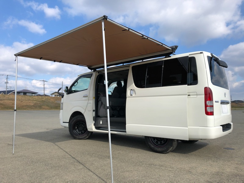 | リアゲートからキャンパー時 | サイドオーニング展開時 | ||