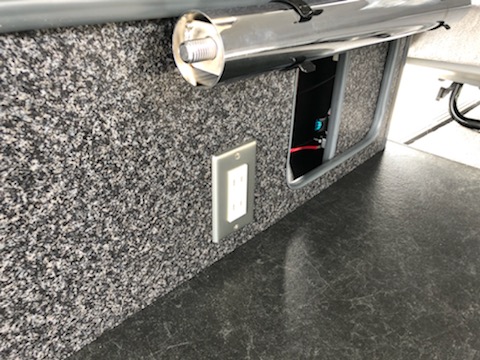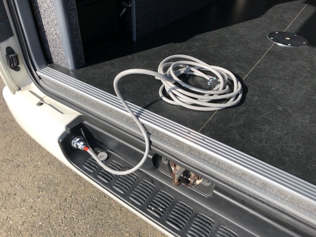 | リアバンパーステップ部分にソケット取付 | キャンパーバンシート下にコンセント設置 | ||