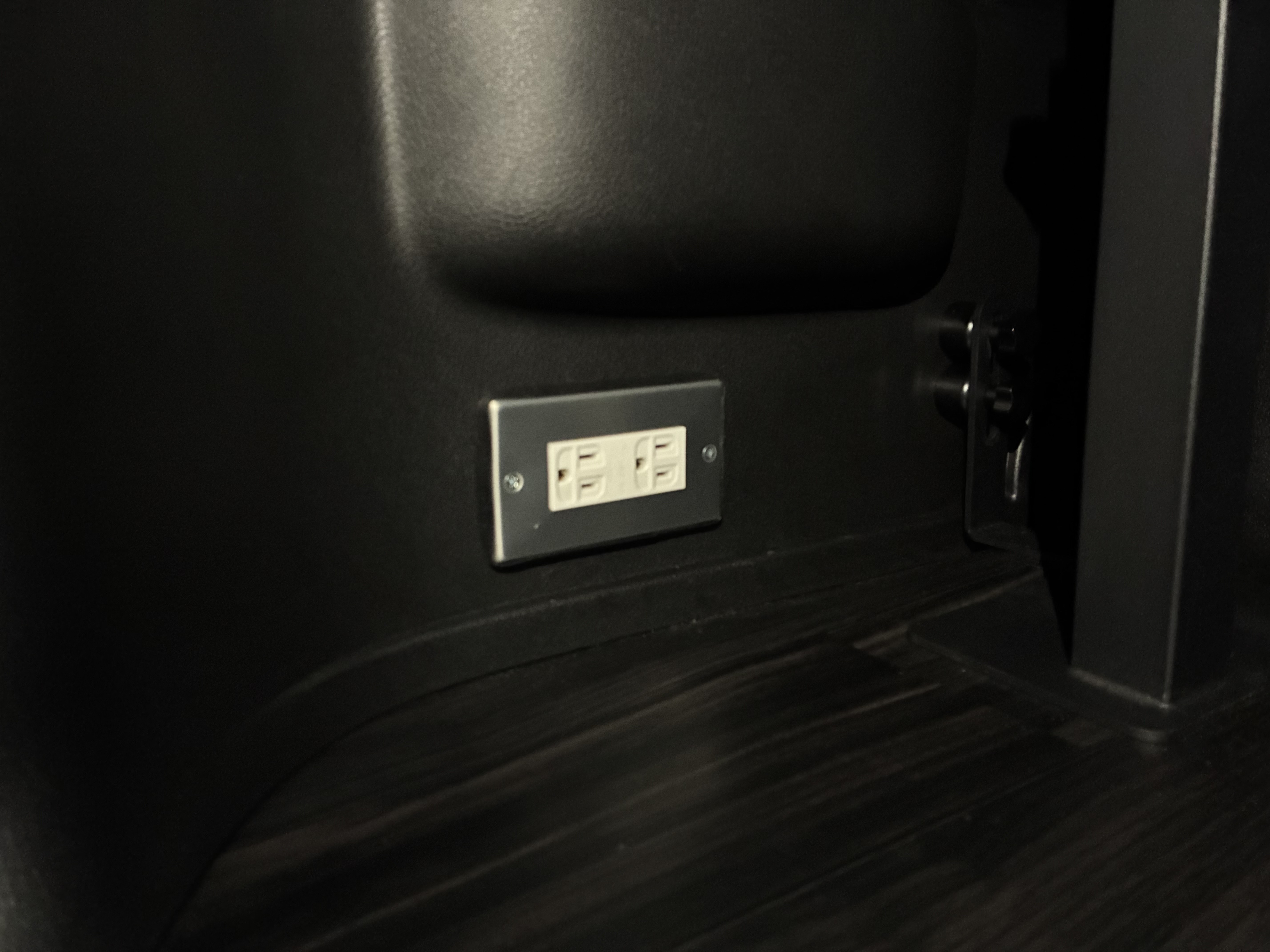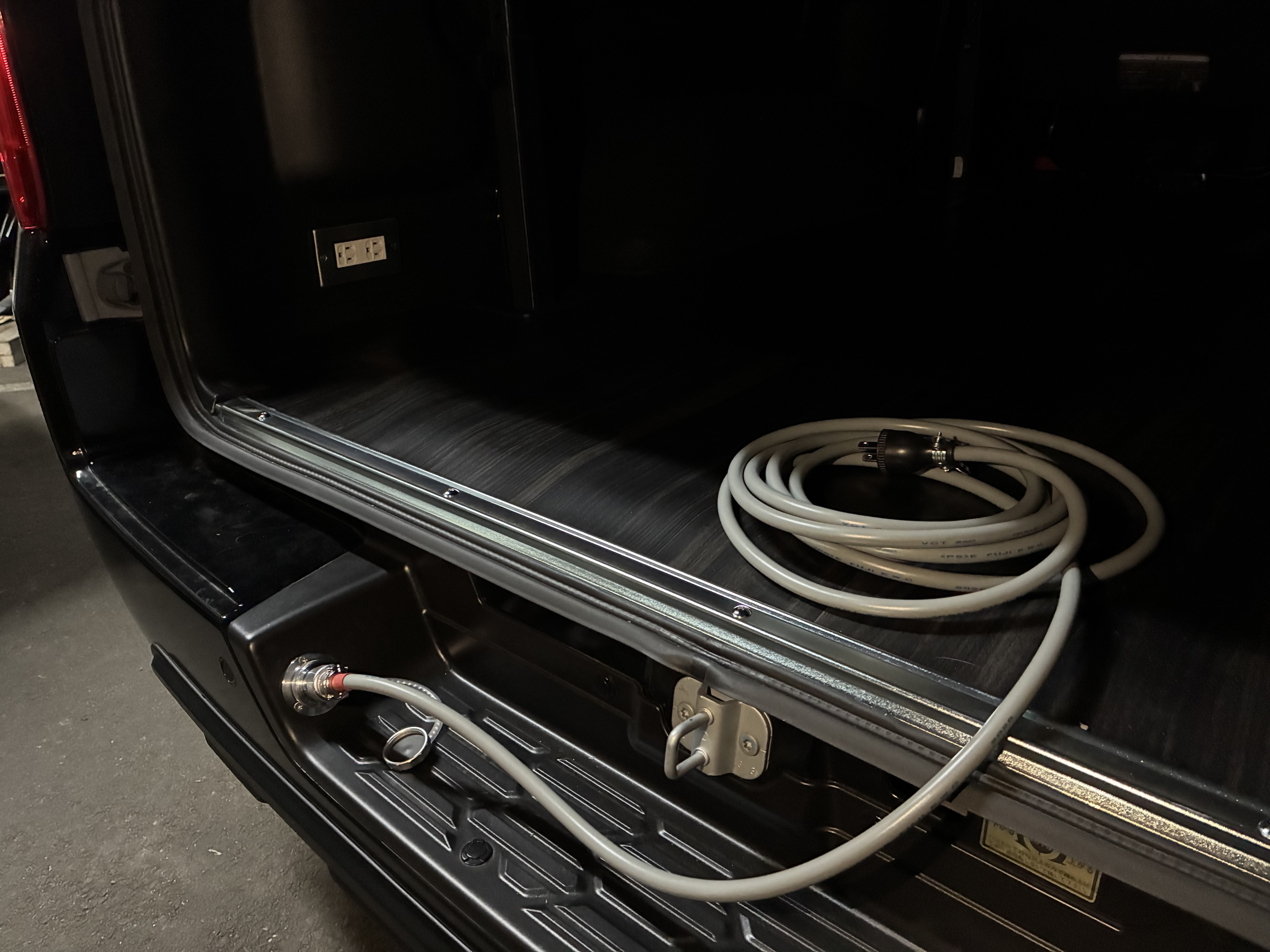 | ハイエースリアバンパーステップ部分取付 | キャンパーバンシート下にコンセント設置 | ||
